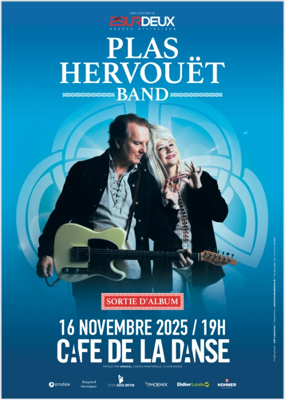 Together, they created the PLAS HERVOUËT BAND, which performs in Europe as well as across the Atlantic ( Oklahoma in the USA, at the SPAH music convention sponsored by Hohner) A concert to preview their album “GRAND DUEL” took place on January 19 2025 at the Café de la Danse in Paris, and it was sold out a month in advance